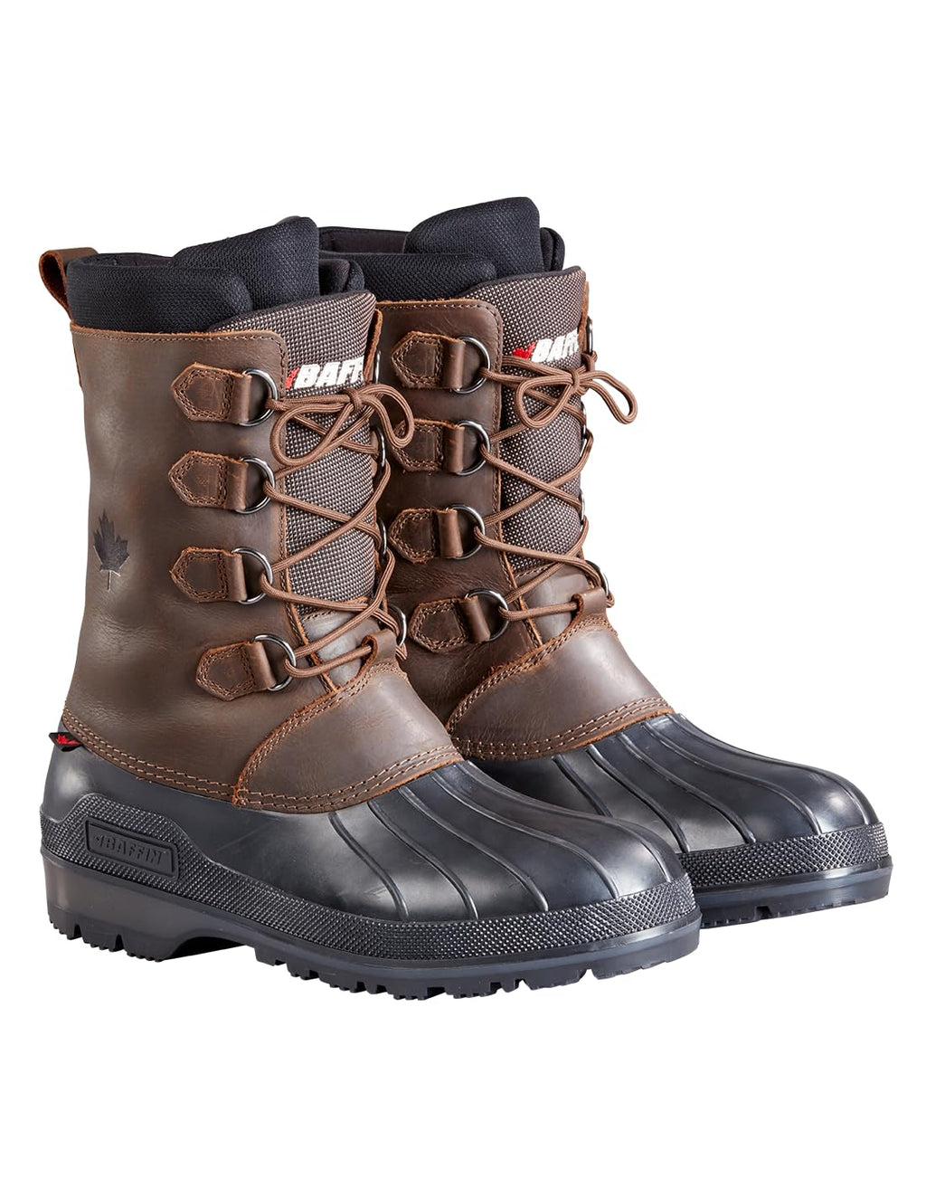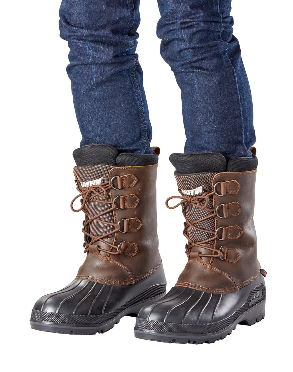 Die Baffin Cambrian sind robuste Herren-Winterstiefel für arktische Bedingungen. Das mehrlagige Innenschuhsystem, die wasserdichte Basis und das widerstandsfähige Obermaterial aus Leder bieten zuverlässige Wärme, Stabilität und Schutz in Schnee, Eis und Nässe.