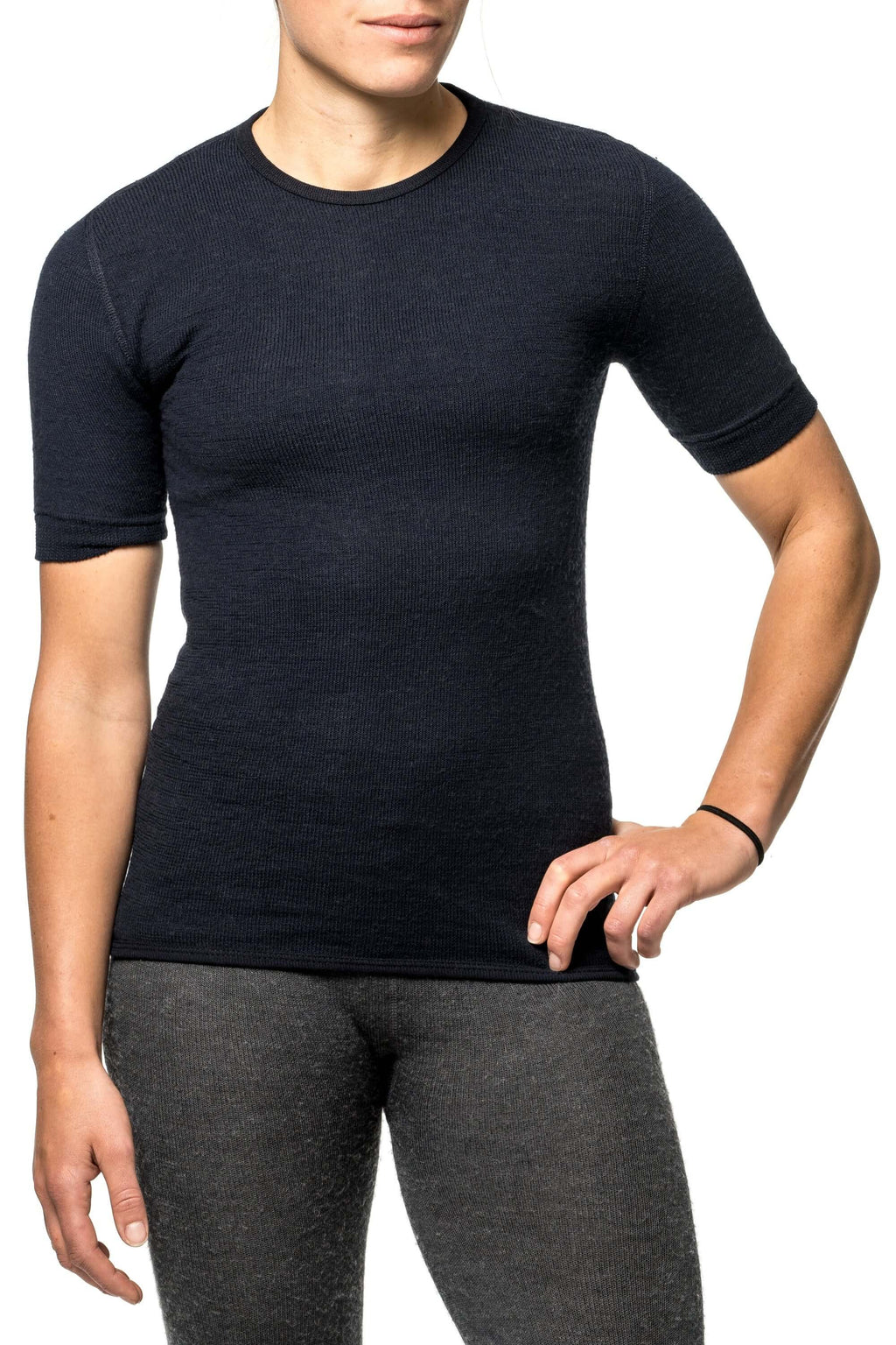 Das 200 g/m² Wollfrottée-Gewebe leitet Feuchtigkeit effektiv ab, speichert Luft und hält angenehm warm, ohne zu überhitzen. Der klassische Rundhalsausschnitt und der körpernahe Schnitt sorgen für hohen Tragekomfort – beim Wandern, Arbeiten oder im Alltag.